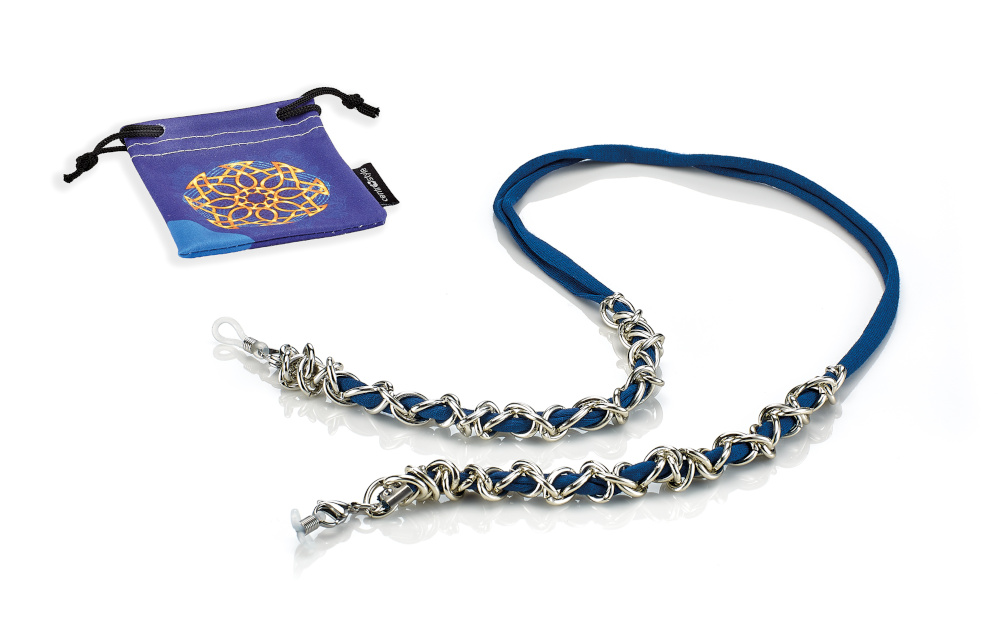 Modische Brillenketten aus einer Kombination von Stoffband & Aluminium, inkl. Mikrofaserbeutel